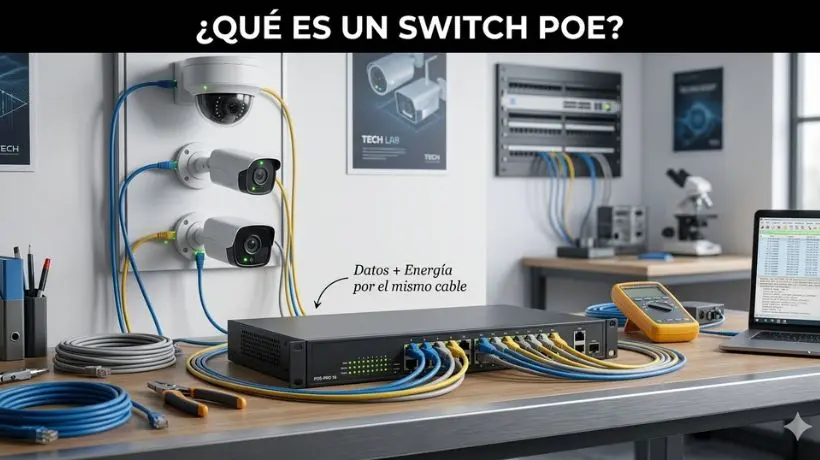 Cada vez que un técnico llega a instalar cámaras IP en una empresa, enfrenta la misma pregunta del cliente: ¿por qué necesito tantos cables? La respuesta, en la mayoría de casos, es que no los necesita. La tecnología PoE elimina el cableado eléctrico de cada cámara usando un único cable de red para todo. En este artículo te explico exactamente qué es PoE, cómo funciona un switch PoE y por qué hoy es el estándar de instalación profesional.